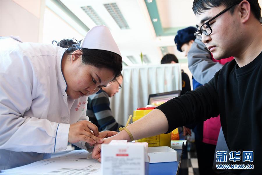 2月24日,在錫林郭勒盟中心血站,工作人員在為前來獻(xiàn)血的志愿者檢驗(yàn)血型。 內(nèi)蒙古自治區(qū)錫林郭勒盟“2·23”重大事故傷者正在錫林郭勒盟醫(yī)院、錫林郭勒盟蒙醫(yī)醫(yī)院接受救治。因用血需求量大,當(dāng)?shù)匮獛鞄齑嬉欢鹊陀诰渚€。在當(dāng)?shù)卣h下,各單位職工、市民紛紛前往錫林郭勒盟中心血站獻(xiàn)血。截至24日16時(shí),已有220余名志愿者完成獻(xiàn)血,采集全血6.8萬毫升,機(jī)采血小板9個治療量。 新華社記者 劉磊 攝