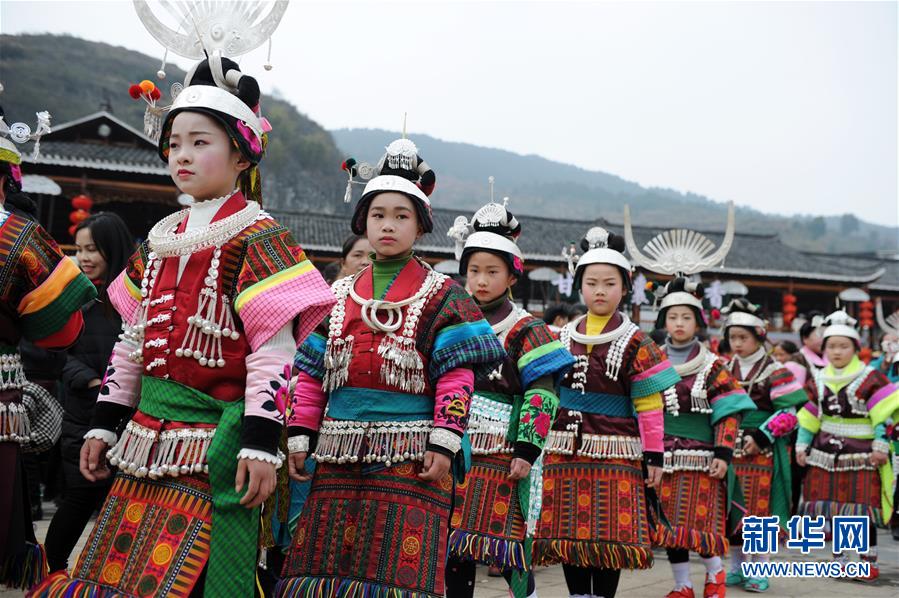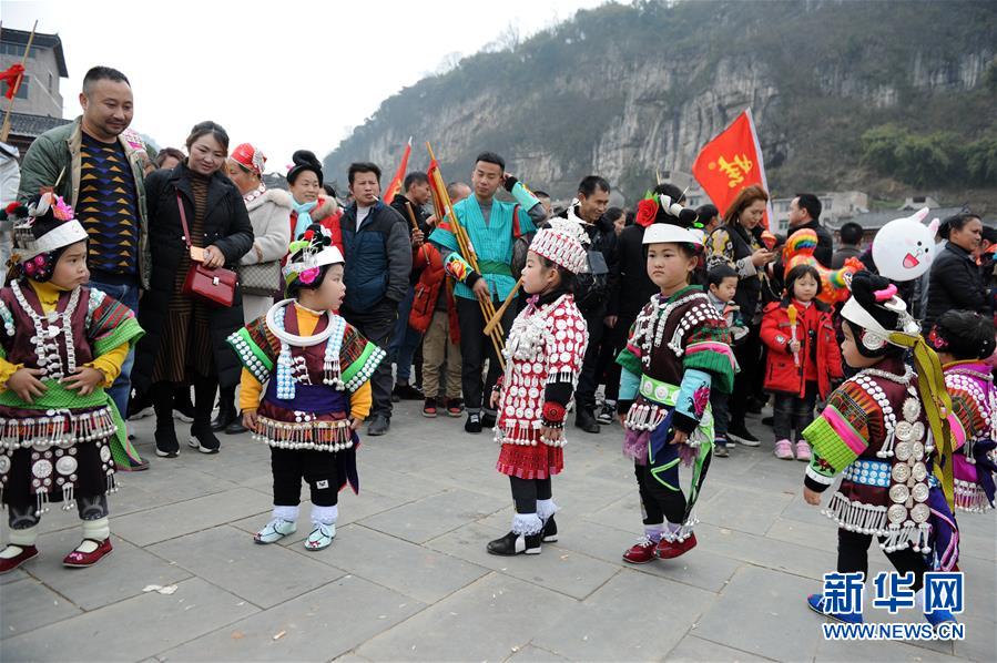2月24日,在貴州省凱里市舟溪鎮(zhèn),苗族小姑娘身著盛裝跳蘆笙舞。 當日,在貴州省黔東南苗族侗族自治州凱里市舟溪鎮(zhèn),來自各地的苗族群眾身著節(jié)日盛裝,歡聚在古老的“甘囊香”蘆笙堂,男子吹奏起蘆笙,姑娘和孩子們跳起蘆笙舞,歡度新春,祈求風調(diào)雨順、五谷豐登,青年男女也借此良日尋覓意中人。 “甘囊香”是苗語音譯,意思為“河流的下游,神仙匯聚的地方”?!案誓蚁恪碧J笙會是貴州規(guī)模最大、最古樸的苗族蘆笙會之一。 新華社記者楊文斌攝