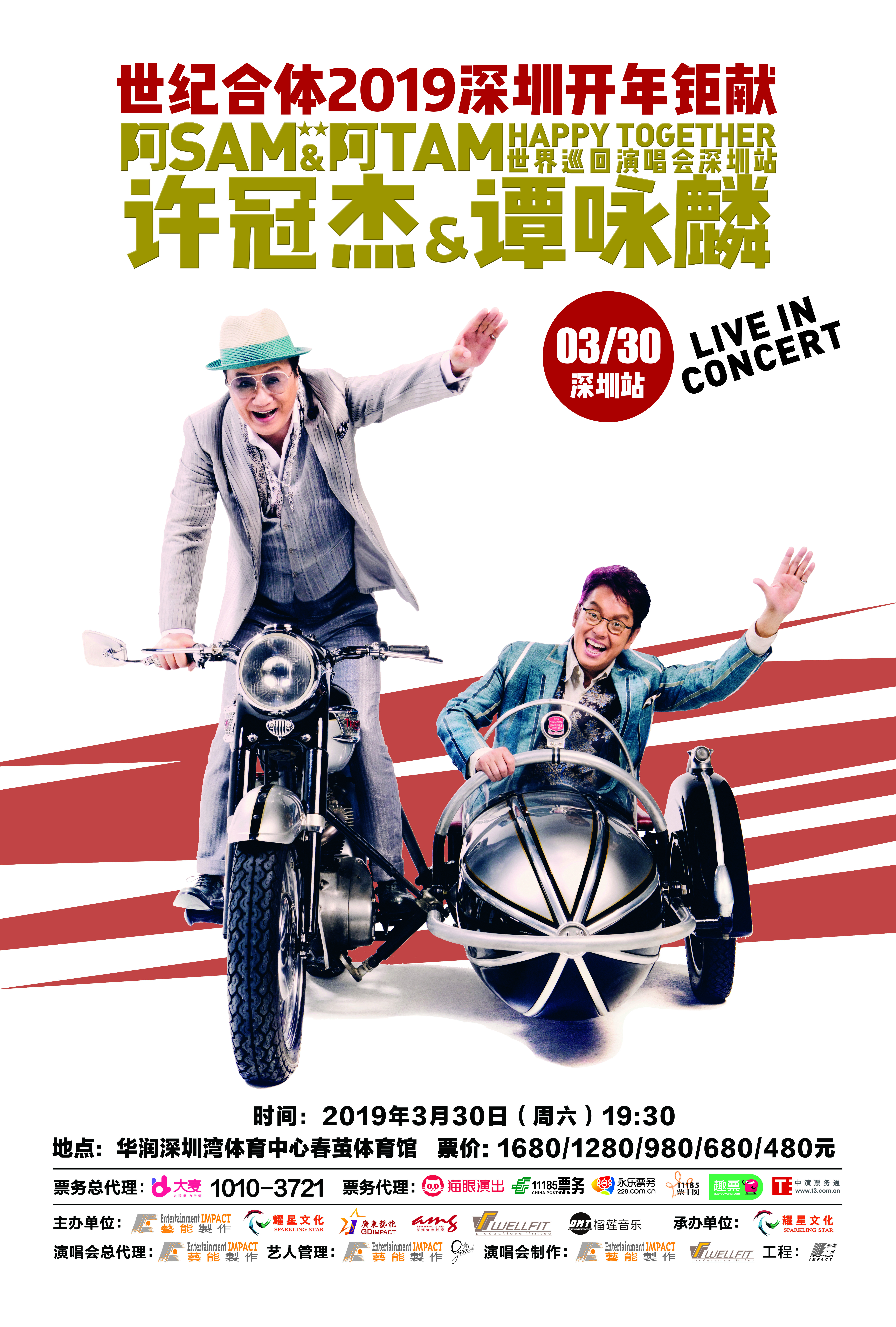 “許冠杰&譚詠麟阿Sam &阿Tam Happy Together”世界巡回演唱會(huì)于2月16日在澳門開(kāi)啟了2019新春首唱,此后,他們將于3月23日和3月30日登陸佛山世紀(jì)蓮體育中心體育場(chǎng)和深圳灣體育中心“春繭”體育館。