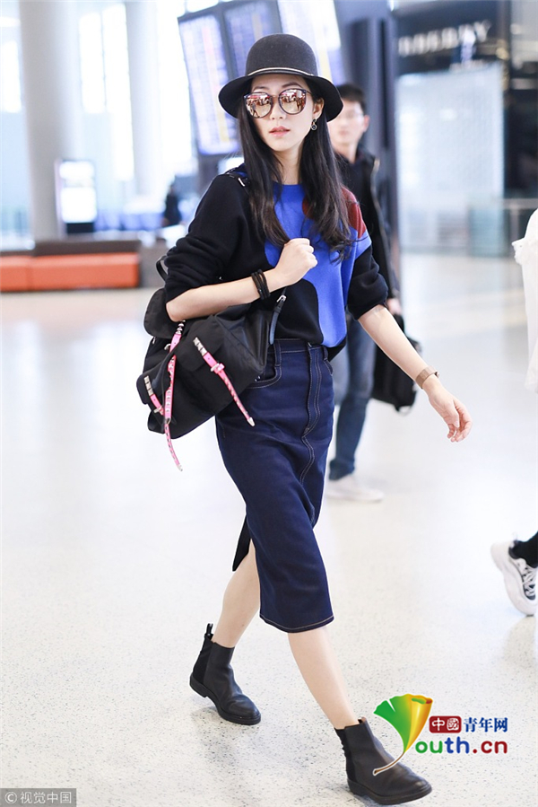3月4日,上海,韓雪現(xiàn)身機(jī)場。她戴著圓帽和鐳射墨鏡,身穿拼色毛衣,盡顯優(yōu)雅名媛范。