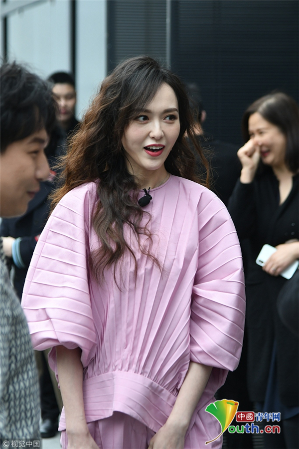 唐嫣隔玻璃比心與粉絲互動 路人視角也美到窒息