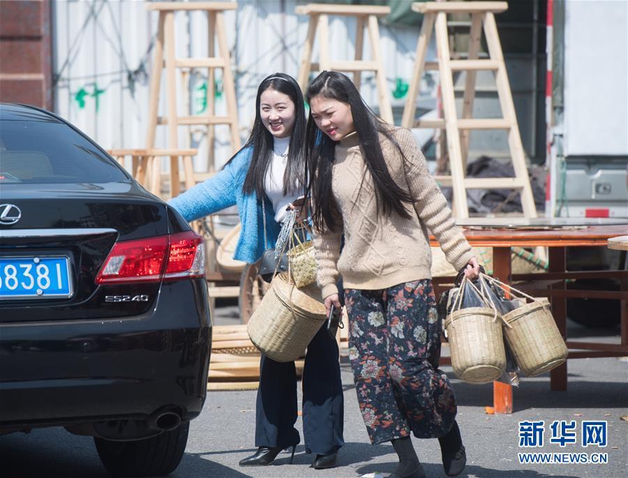 3月12日,兩位女士在福建武夷山“柴頭會”上采購后準備乘車離開。 新華社記者 宋為偉 攝
