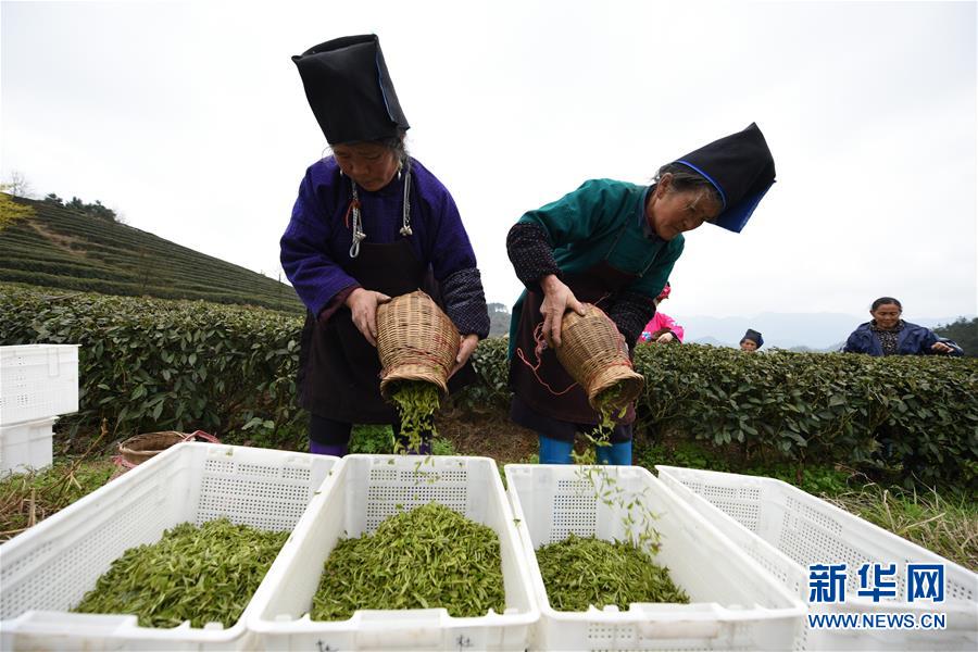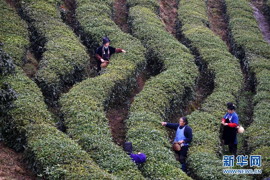 近日,隨著氣溫回升,貴州省黔東南苗族侗族自治州丹寨縣“扶貧茶園”的春茶陸續(xù)進(jìn)入采摘期。 2018年以來,丹寨縣創(chuàng)新產(chǎn)業(yè)扶貧模式,采取社會(huì)公眾線上認(rèn)領(lǐng)茶園,茶園聘請(qǐng)當(dāng)?shù)刎毨魟?wù)工的“扶貧茶園”模式,為該縣貧困戶創(chuàng)造茶園管理、采茶、制茶等就業(yè)機(jī)會(huì),幫助貧困戶增收。 新華社記者 楊文斌 攝
