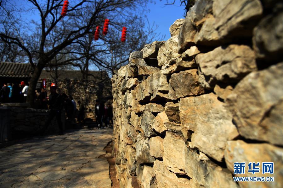 3月31日,游客在上九山村入口處游覽。山東省鄒城市石墻鎮(zhèn)上九山村始建于宋代,是一座依山而建的石頭村,有明清建筑風(fēng)格的古民居300余套,古樸傳統(tǒng)的村貌吸引眾多游客。2019年1月,上九山村入選第七批中國(guó)歷史文化名村。 新華社記者 王凱 攝