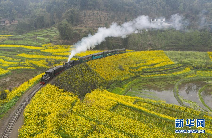 初春時(shí)節(jié),在花海中穿行的嘉陽(yáng)小火車迎來(lái)了每年的旅游旺季,眾多游客慕名前來(lái)乘坐。