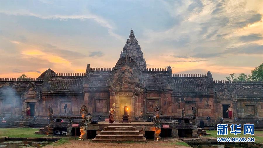 4月5日,在泰國武里南府,當(dāng)?shù)嘏源虬绯上膳臉幼釉谂羶z隆寺前跳舞。 一年一度的“登帕儂隆山節(jié)”在泰國東北部毗鄰柬埔寨的武里南府帕儂隆山舉辦。當(dāng)?shù)厝艘怨叛b巡游展示獨(dú)特的傳統(tǒng)文化,希望能吸引更多外國游客、促進(jìn)當(dāng)?shù)芈糜螛I(yè)發(fā)展。 新華社記者 楊舟 攝