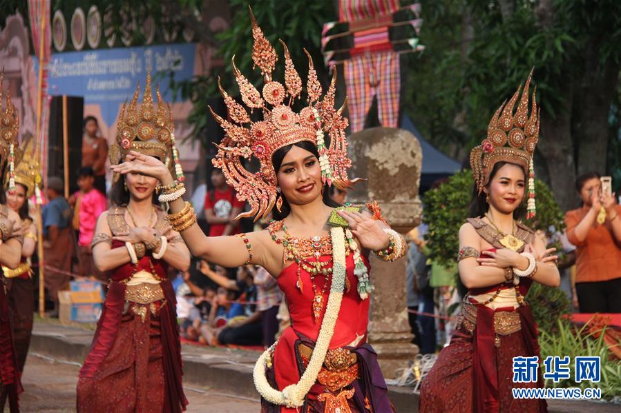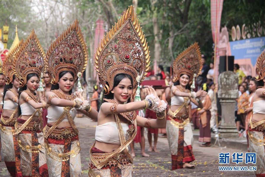 4月5日,在泰國武里南府,當?shù)嘏源虬绯上膳臉幼釉谂羶z隆寺前跳舞。 一年一度的“登帕儂隆山節(jié)”在泰國東北部毗鄰柬埔寨的武里南府帕儂隆山舉辦。當?shù)厝艘怨叛b巡游展示獨特的傳統(tǒng)文化,希望能吸引更多外國游客、促進當?shù)芈糜螛I(yè)發(fā)展。 新華社記者 楊舟 攝