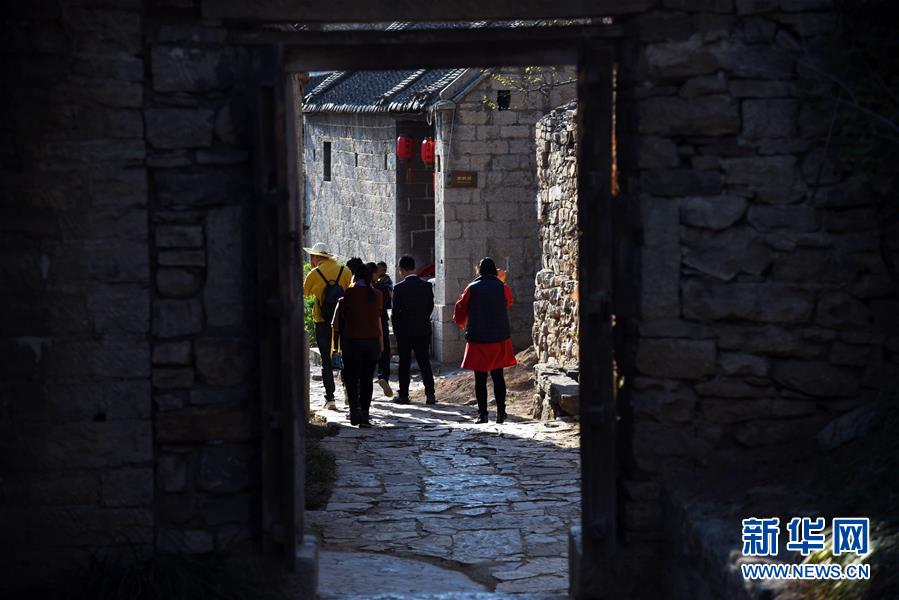 3月31日,游客在上九山村入口處游覽。山東省鄒城市石墻鎮(zhèn)上九山村始建于宋代,是一座依山而建的石頭村,有明清建筑風(fēng)格的古民居300余套,古樸傳統(tǒng)的村貌吸引眾多游客。2019年1月,上九山村入選第七批中國歷史文化名村。 新華社記者 王凱 攝