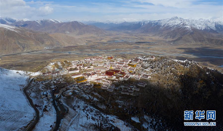 雪后的甘丹寺(4月8日無(wú)人機(jī)拍攝)。