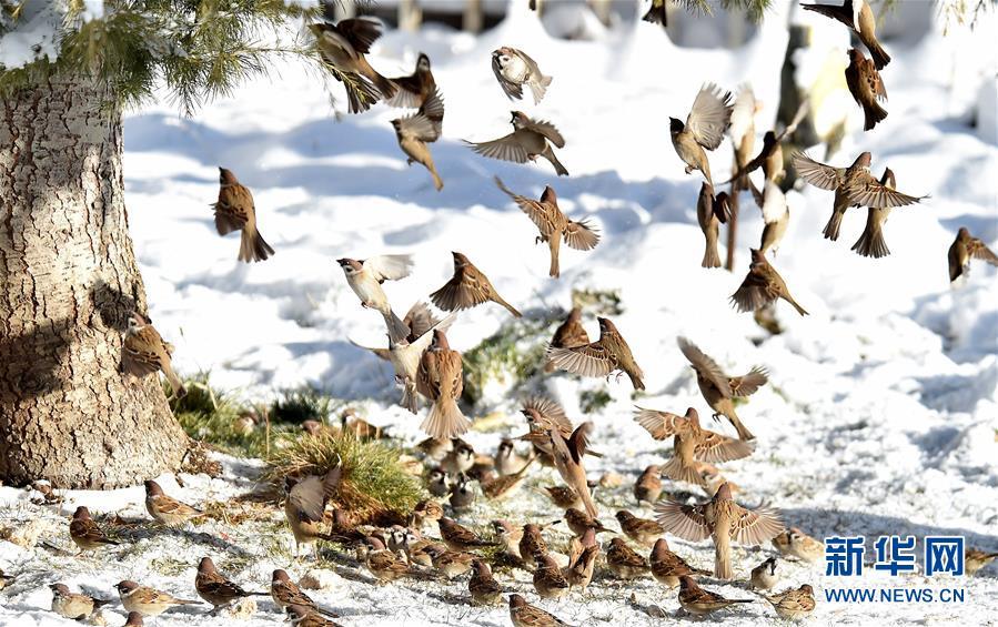 12月19日,小鳥在布達(dá)拉宮廣場上的雪地里撒歡。 12月18日,西藏拉薩市迎來今年入冬以來的首場降雪。19日清晨,拉薩雪后初霽,處處銀裝素裹,盡顯雪域高原之美。 新華社記者覺果攝