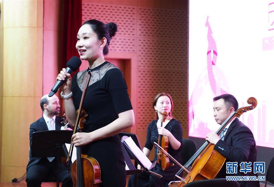 4月25日,上海交響樂團的中提琴手巴桐在演奏前介紹曲目。 當(dāng)日,第一場“全城交響·上交為你而來”音樂會在復(fù)旦大學(xué)附屬腫瘤醫(yī)院報告廳奏響,為患者及醫(yī)護人員獻(xiàn)上一場專屬音樂會?!叭墙豁憽ど辖粸槟愣鴣怼笔巧虾=豁憳穲F2019年向全上海的機構(gòu)及個人開放的公益演出項目。 新華社記者 任瓏 攝