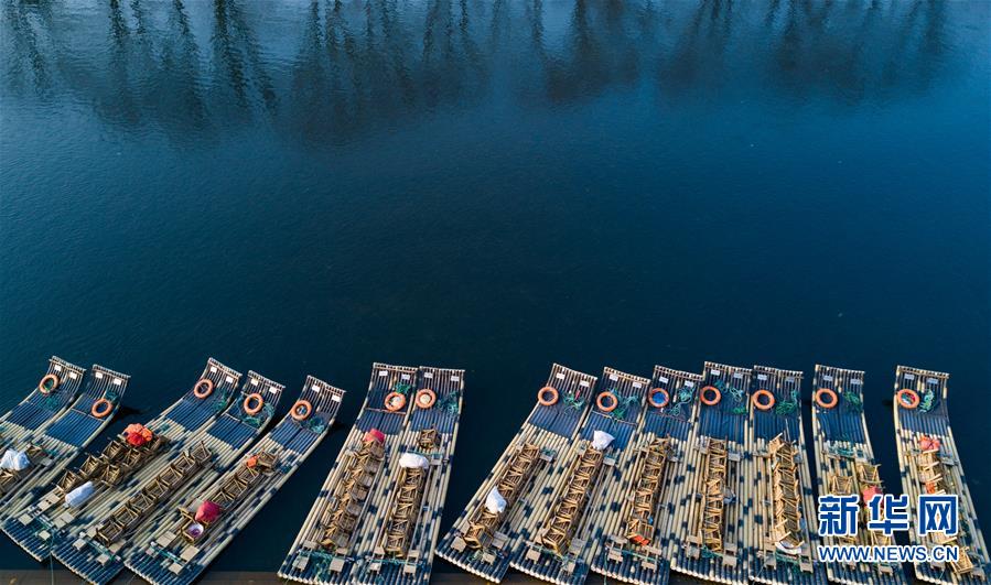 這是福建省武夷山風(fēng)景名勝區(qū)九曲溪邊??康闹穹ぃ?月11日無人機(jī)拍攝)。 新華社記者 宋為偉 攝