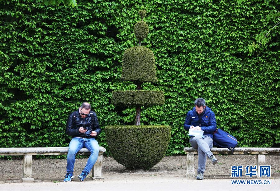 4月25日,人們?cè)诜▏?guó)巴黎近郊的凡爾賽花園內(nèi)游覽。新華社記者高靜攝