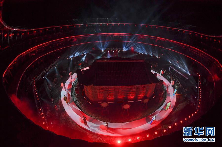 4月27日,表演結(jié)束后,模特在向觀眾致意。 當(dāng)日,土樓光語國際時尚大秀在福建省南靖縣的土樓裕昌樓內(nèi)舉行。這場融匯文化、時尚與旅游元素的大秀,通過傳統(tǒng)與時尚的有機(jī)融合,展現(xiàn)南靖土樓及文化的魅力和風(fēng)采。 新華社記者魏培全攝