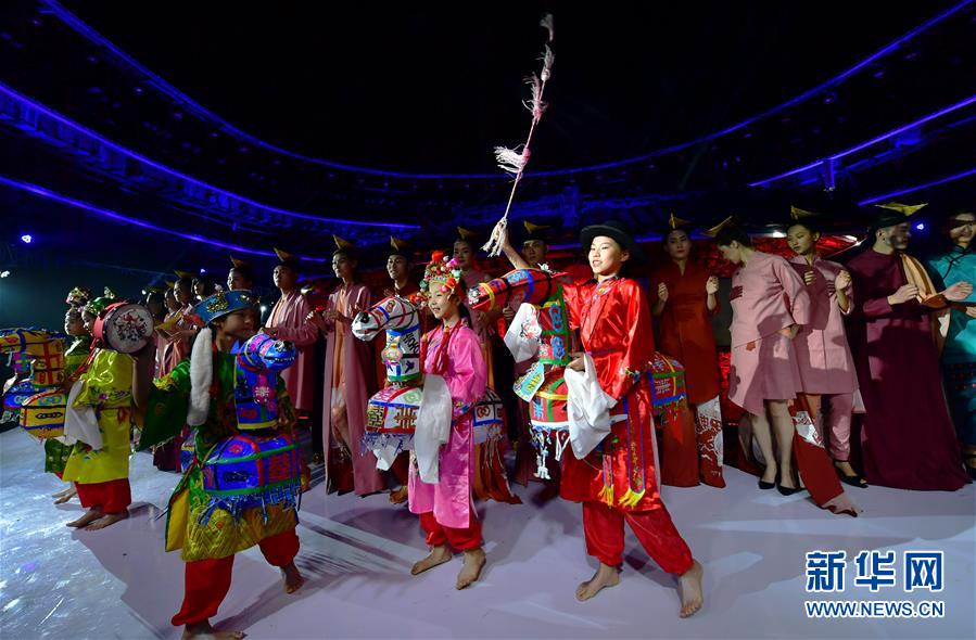 4月27日,小模特身穿民族服飾展示土樓當(dāng)?shù)氐姆俏镔|(zhì)文化遺產(chǎn)竹馬戲。 當(dāng)日,土樓光語國際時尚大秀在福建省南靖縣的土樓裕昌樓內(nèi)舉行。這場融匯文化、時尚與旅游元素的大秀,通過傳統(tǒng)與時尚的有機(jī)融合,展現(xiàn)南靖土樓及文化的魅力和風(fēng)采。 新華社記者魏培全攝