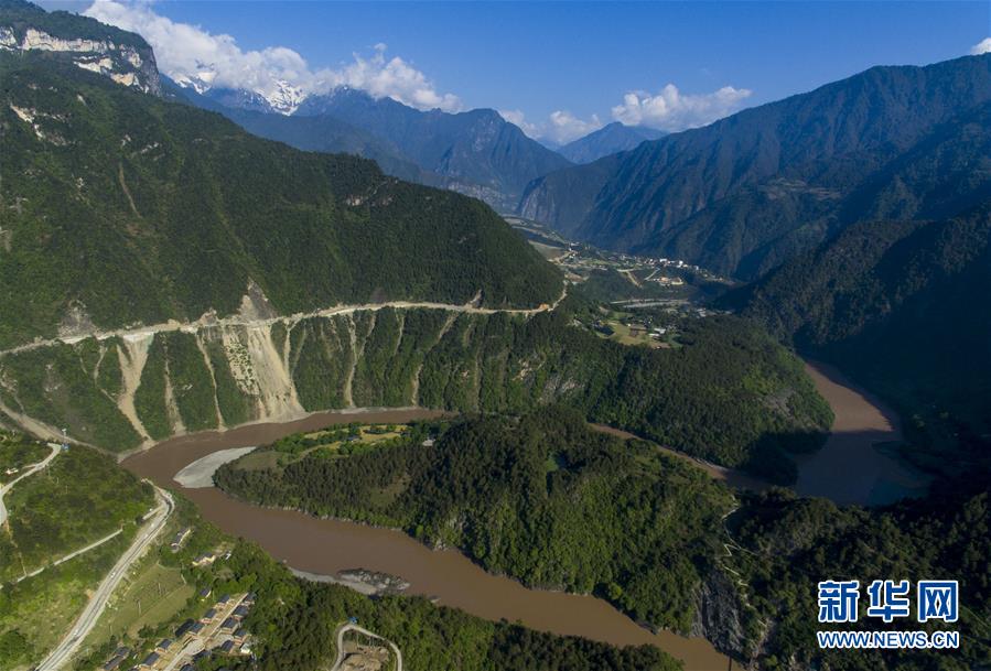 這是4月27日在云南省貢山獨(dú)龍族怒族自治縣丙中洛鎮(zhèn)拍攝的“怒江第一灣”(無人機(jī)拍攝)。 怒江自青藏高原一路奔騰向南流至云南省貢山獨(dú)龍族怒族自治縣丙中洛鎮(zhèn),高黎貢山與碧羅雪山夾江而立,江水順山勢急轉(zhuǎn)形成了一個(gè)氣勢磅礴的半圓形大灣,被稱為“怒江第一灣”。 新華社記者 江文耀 攝