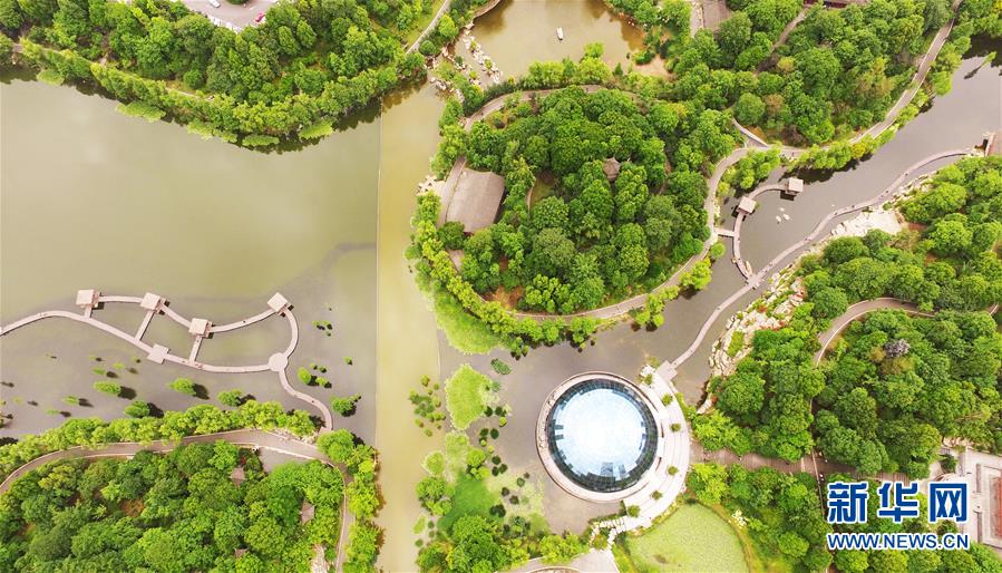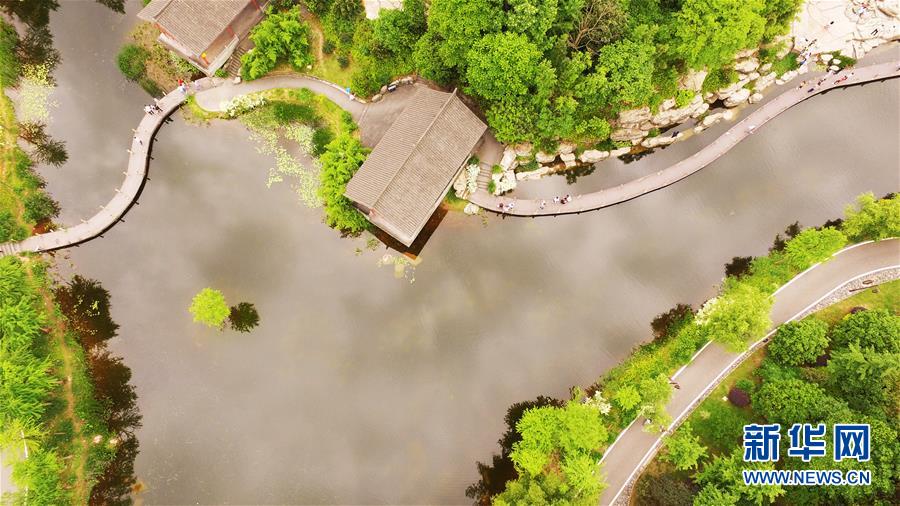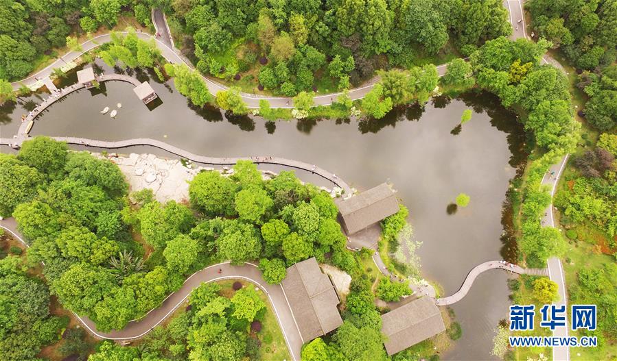 這是5月1日無人機(jī)拍攝的重慶璧山觀音塘濕地公園景象。