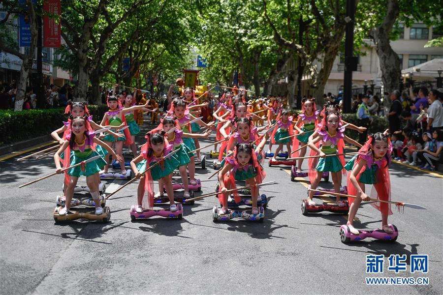 5月4日,演員裝扮成各種動漫形象在巡游隊伍中表演。當(dāng)日,第十五屆中國國際動漫節(jié)彩車巡游活動在浙江杭州南宋御街中北創(chuàng)意街區(qū)舉行。巡游表演隊伍約500米長,由4輛大型動漫彩車、1輛小火車及400多名演員組成。新華社記者 黃宗治 攝