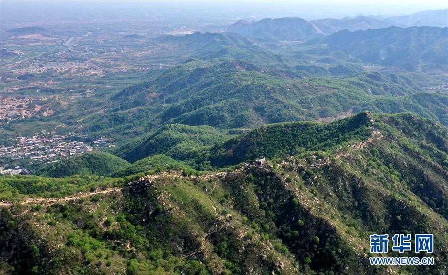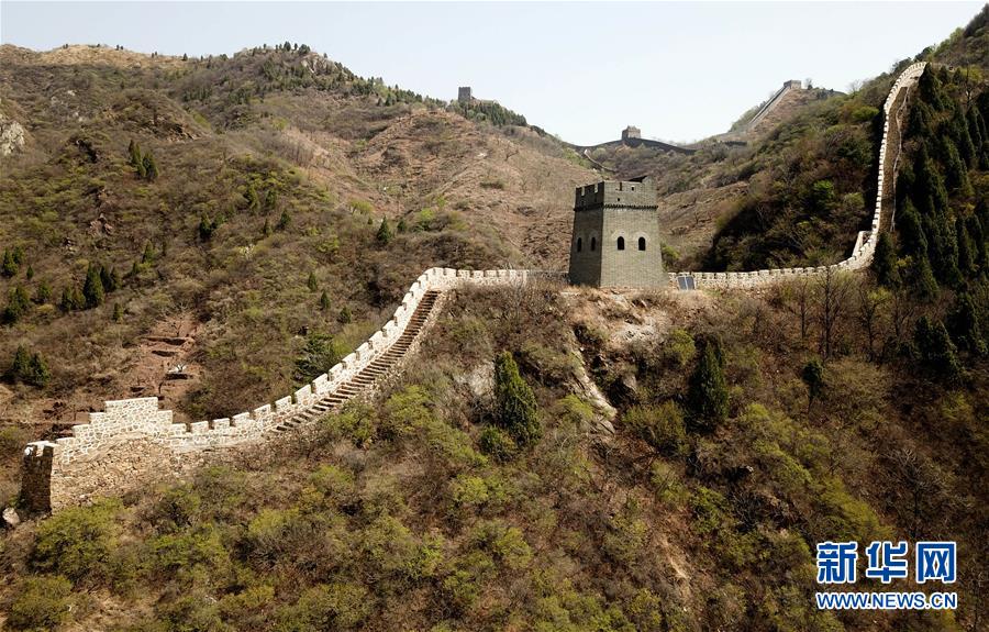 這是4月19日拍攝的黃崖關(guān)長城景區(qū)(無人機(jī)拍攝)。新華社記者 李然 攝