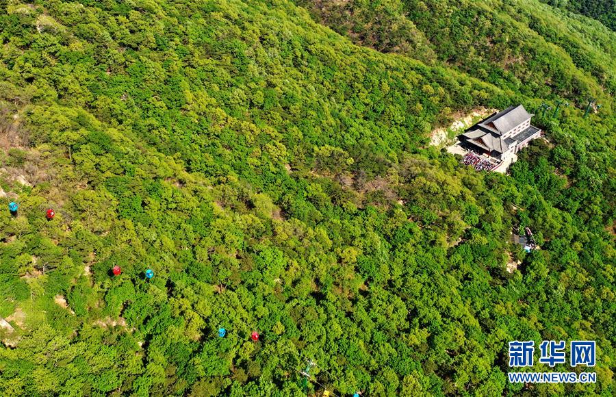 一處建筑坐落在盤山風(fēng)景名勝區(qū)的森林中(5月2日無人機(jī)拍攝)。新華社記者 岳月偉 攝