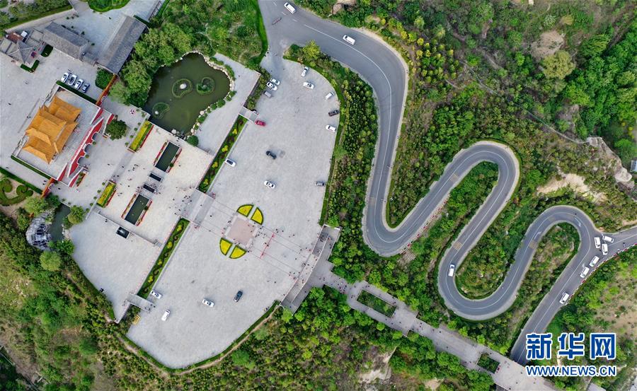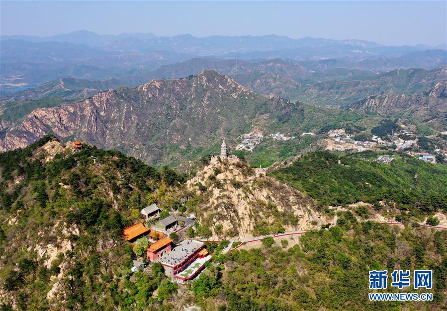 這是4月19日拍攝的盤山風(fēng)景名勝區(qū)正門景觀(無人機(jī)拍攝)。新華社記者 李然 攝