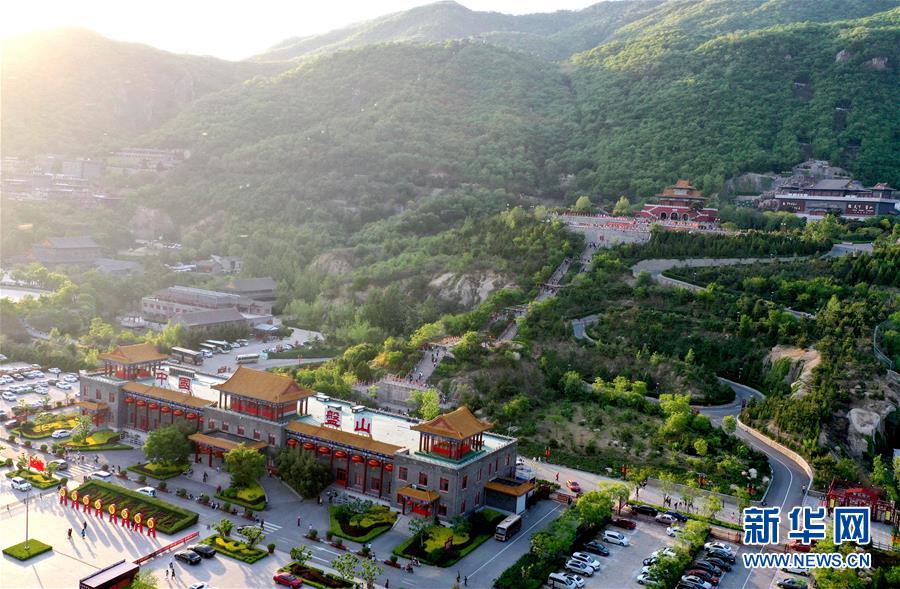 這是5月2日拍攝的盤山風(fēng)景名勝區(qū)正門景觀(無人機(jī)拍攝)。新華社記者 岳月偉 攝