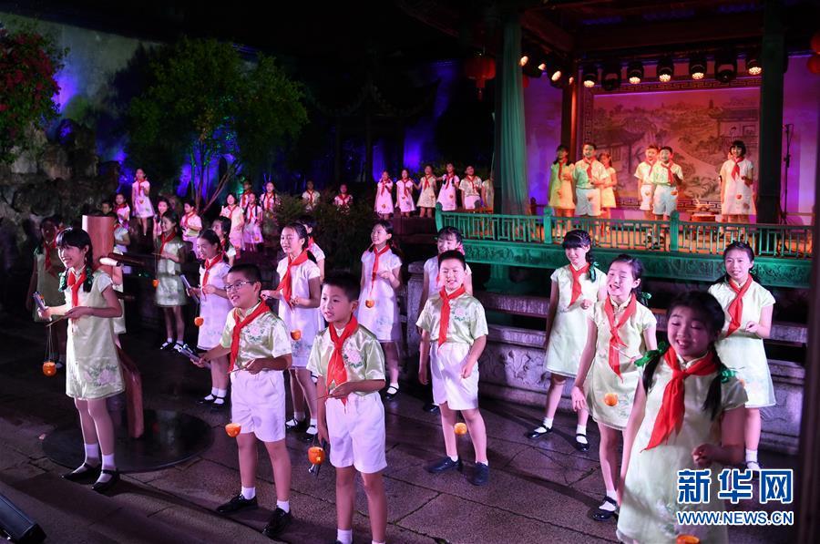 5月5日,小學(xué)生在福州三坊七巷的水榭戲臺(tái)表演。 福州三坊七巷為國(guó)內(nèi)現(xiàn)存規(guī)模較大、保護(hù)較為完整的歷史文化名街區(qū),是中國(guó)十大歷史文化名街之一。位于三坊七巷內(nèi)的水榭戲臺(tái)經(jīng)常舉辦傳統(tǒng)文化演出吸引游客慕名前來(lái)觀賞。 新華社記者 林善傳 攝