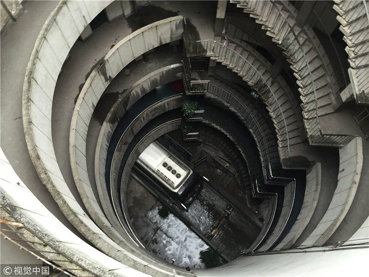 探秘重慶魔幻八層圓筒型轉(zhuǎn)轉(zhuǎn)樓 公交車穿其而過