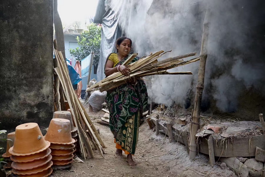 達(dá)卡遠(yuǎn)郊區(qū)一個(gè)印度教徒聚居的村莊,幾乎家家戶戶都開辦制陶作坊,以傳統(tǒng)工藝制作陶盆、陶罐、陶盤和建筑裝飾陶器,遠(yuǎn)銷孟加拉國內(nèi)各地。李仁奇 攝
