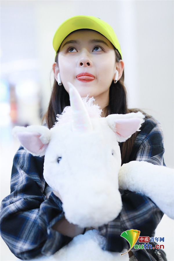 2019年5月12日,北京,宋祖兒現(xiàn)身機場。她穿格子襯衫戴小黃帽揮手大步走,元氣少女活力滿滿,抱玩偶變身獨角獸女孩童趣十足超可愛。