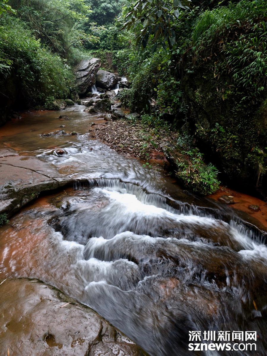 丹霞地貌與大面積古植被和2359 種動植物、珍稀瀕危動植物共存,是赤水丹霞最獨(dú)特的特征。點(diǎn)綴在原始森林、竹海、桫欏之間,猶如紅寶石鑲嵌在綠洲之中,是世界罕見的綠色丹霞景觀。李仁奇 攝