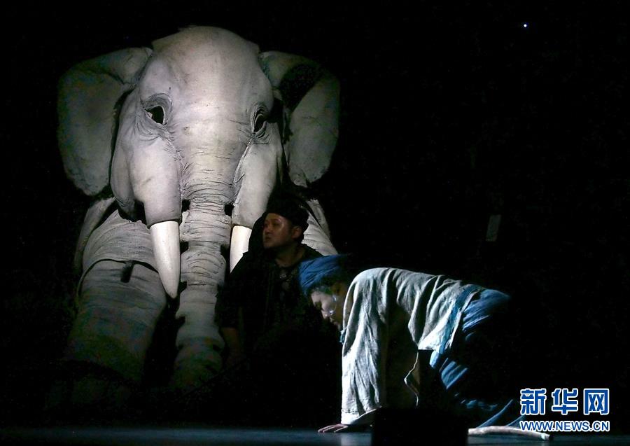 5月15日在上海美琪大戲院拍攝的新版大型人偶舞臺(tái)劇《最后一頭戰(zhàn)象》劇照。 當(dāng)日,作為第12屆中國藝術(shù)節(jié)的參演劇目,大型人偶舞臺(tái)劇《最后一頭戰(zhàn)象》在經(jīng)過4次硬件技術(shù)升級(jí)和故事修改后亮相上海美琪大戲院。 新華社記者 任瓏 攝
