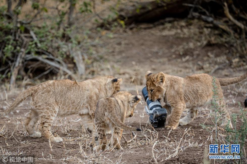 近日,非洲博茨瓦納馬沙圖野生動物保護(hù)區(qū)內(nèi)一頭獅子叼起攝影師掉落在地上的相機(jī),之后還將相機(jī)交給小獅子們玩耍,看起來十分好奇,而攝影師非常無奈。現(xiàn)年57歲的叢林探險(xiǎn)家Barbara Jensen Vorster在一輛越野車上為馬沙圖野生動物保護(hù)區(qū)的獅群拍照時,相機(jī)不小心掉到了地上。砰的一聲響驚動了母獅子,它向攝影師方向移動,迫使探險(xiǎn)隊(duì)撤退。(圖片來源:視覺中國)