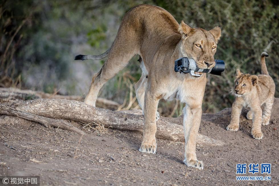 近日,非洲博茨瓦納馬沙圖野生動物保護(hù)區(qū)內(nèi)一頭獅子叼起攝影師掉落在地上的相機(jī),之后還將相機(jī)交給小獅子們玩耍,看起來十分好奇,而攝影師非常無奈?,F(xiàn)年57歲的叢林探險(xiǎn)家Barbara Jensen Vorster在一輛越野車上為馬沙圖野生動物保護(hù)區(qū)的獅群拍照時,相機(jī)不小心掉到了地上。砰的一聲響驚動了母獅子,它向攝影師方向移動,迫使探險(xiǎn)隊(duì)撤退。(圖片來源:視覺中國)