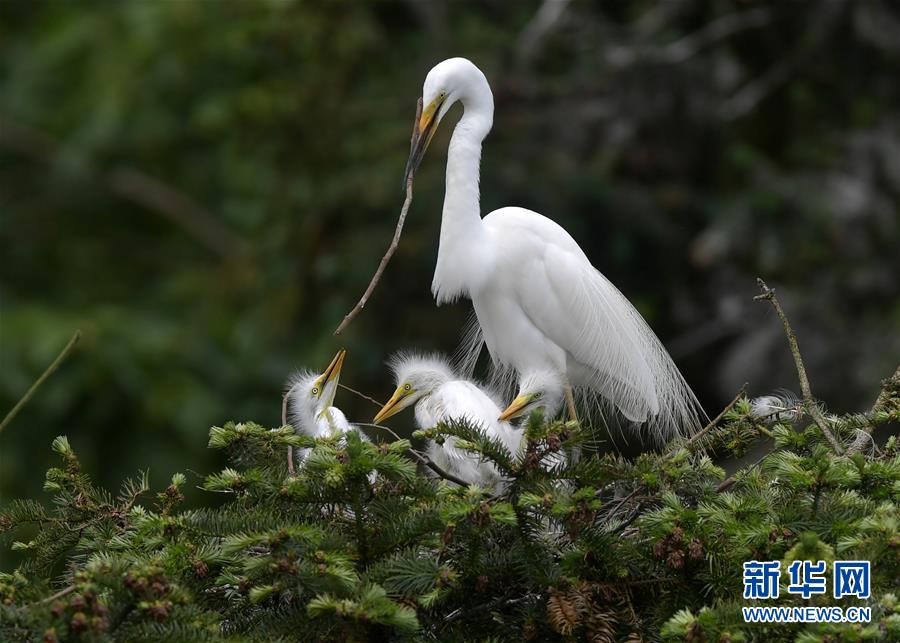 在江西省南昌市新建區(qū)象山森林公園內,白鷺和自己的雛鳥在一起(5月21日攝)。 近日,在江西省南昌市新建區(qū)象山森林公園內,已安家筑巢的大批鷺鳥陸續(xù)孵化出了后代。象山森林公園有著“鷺鳥王國”的美譽,生態(tài)環(huán)境良好,每年都會吸引白鷺、蒼鷺、夜鷺等種類的鷺鳥飛抵棲息和繁衍后代。 新華社記者 彭昭之 攝