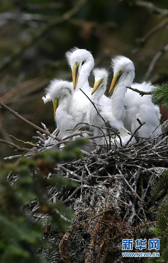 江西省南昌市新建區(qū)象山森林公園內(nèi)的白鷺雛鳥(5月21日攝)。 近日,在江西省南昌市新建區(qū)象山森林公園內(nèi),已安家筑巢的大批鷺鳥陸續(xù)孵化出了后代。象山森林公園有著“鷺鳥王國”的美譽(yù),生態(tài)環(huán)境良好,每年都會吸引白鷺、蒼鷺、夜鷺等種類的鷺鳥飛抵棲息和繁衍后代。 新華社記者 彭昭之 攝