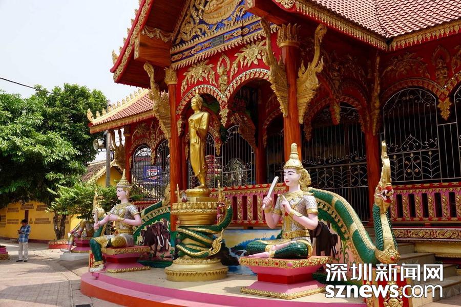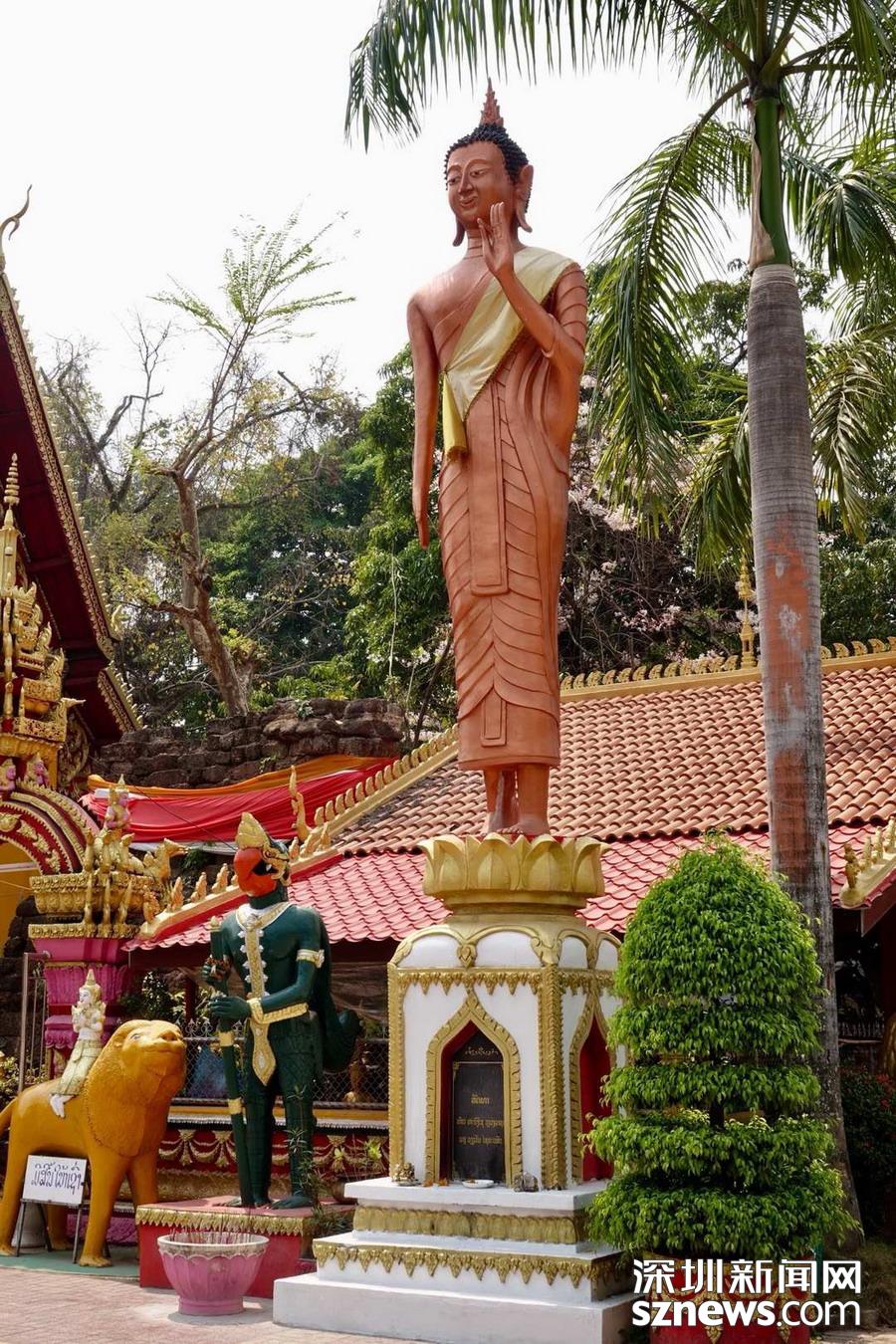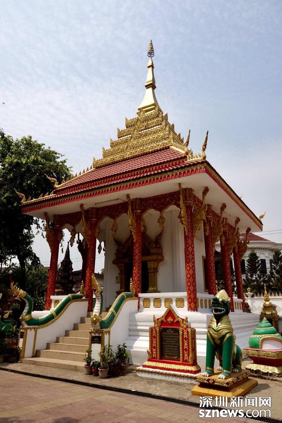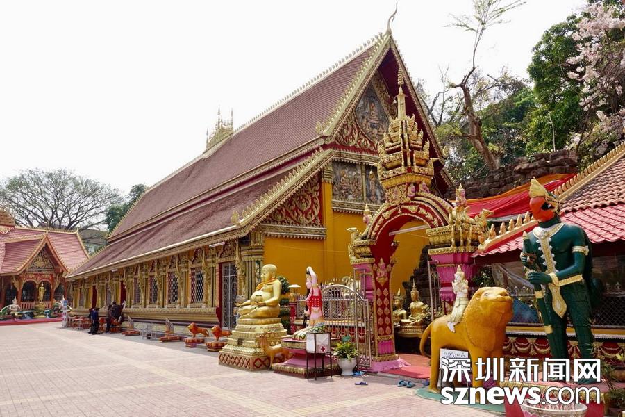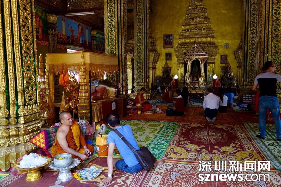 西蒙寺是萬象香火最旺盛的一個寺廟,又稱神城寺,每天有很多當?shù)厝思坝慰蛠磉@里祈福,尤其受泰國游客鐘愛。李仁奇 攝