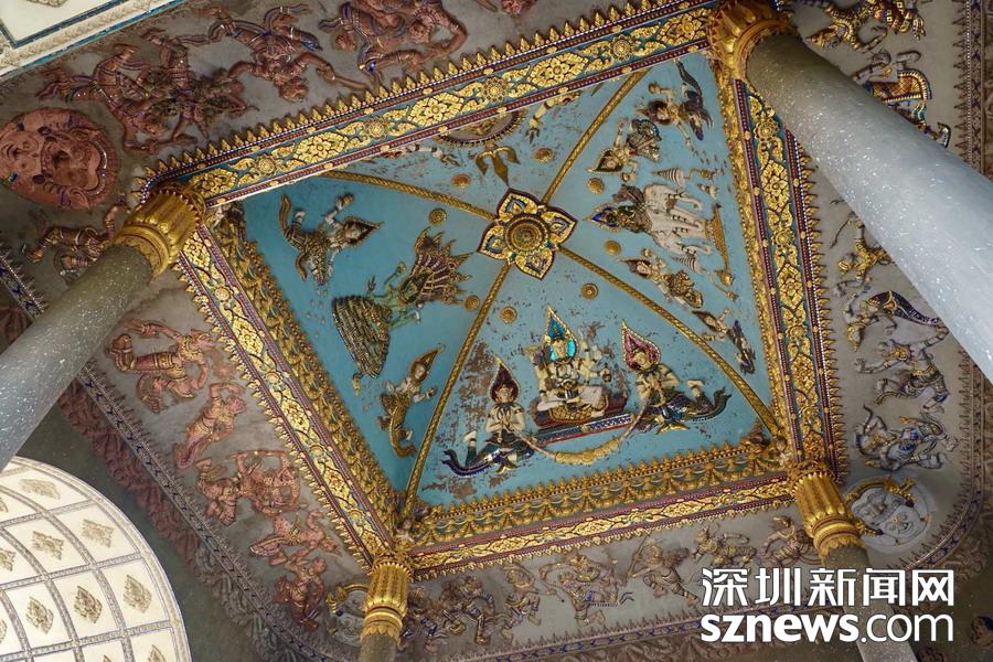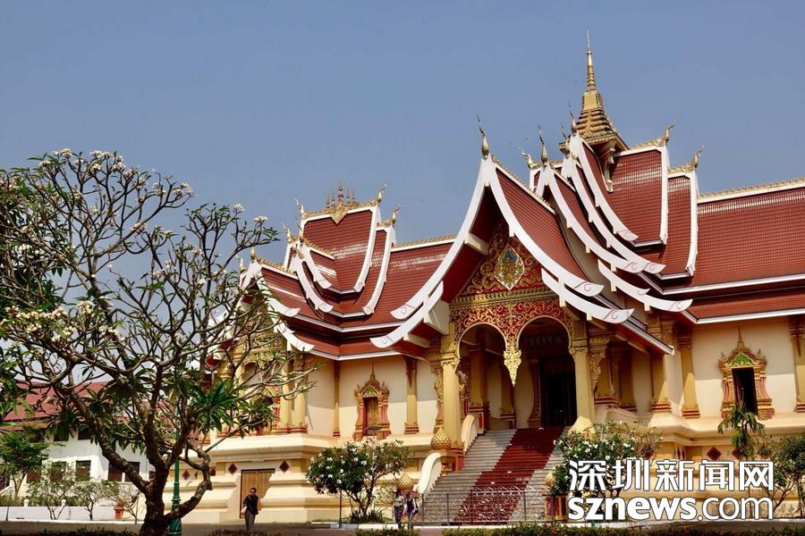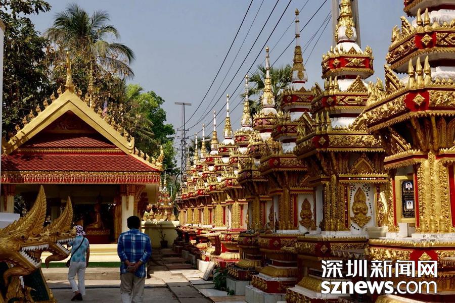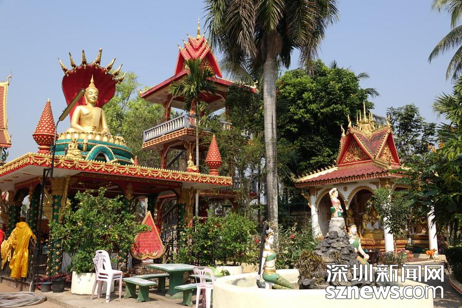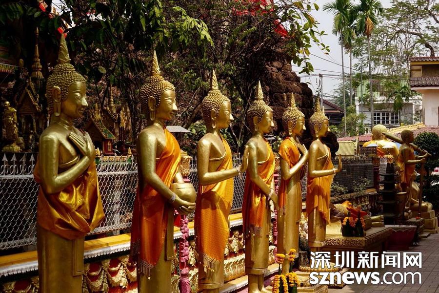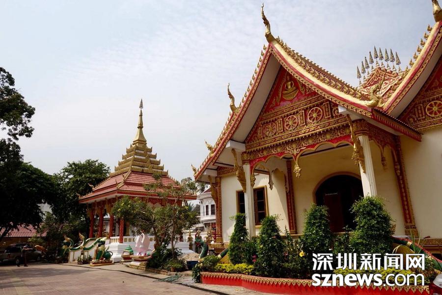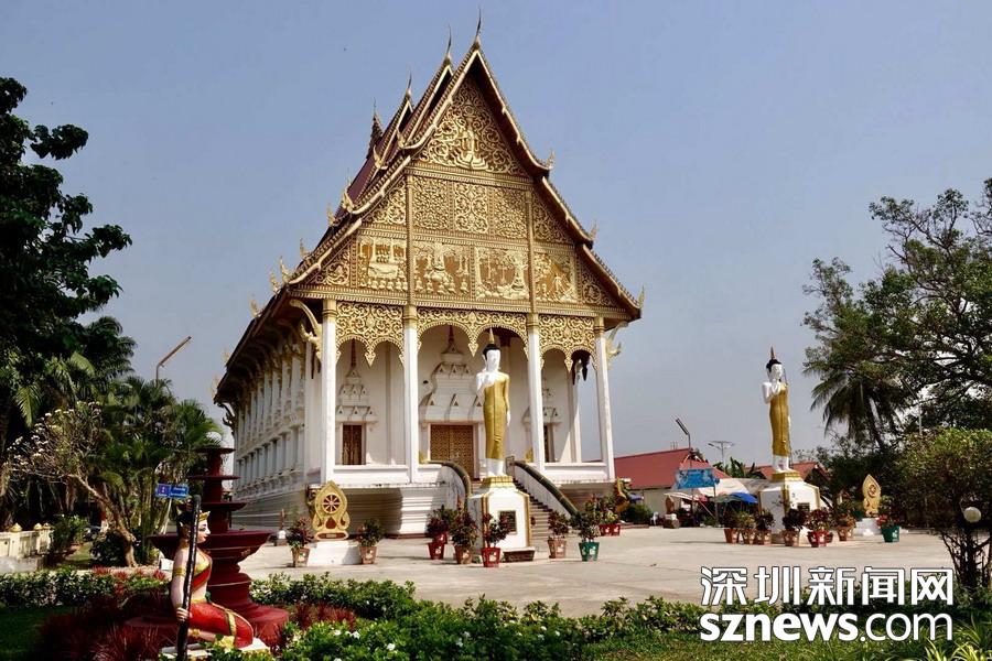 西蒙寺是萬象香火最旺盛的一個寺廟,又稱神城寺,每天有很多當?shù)厝思坝慰蛠磉@里祈福,尤其受泰國游客鐘愛。李仁奇 攝