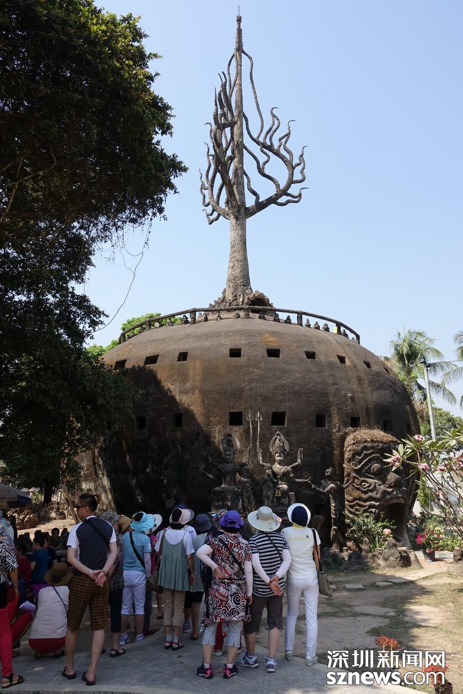 香昆寺實際上是一座佛像公園,位于萬象東南約 24 公里處,寺內(nèi)供奉的各種超凡脫俗的佛像和印度教雕像大多取材于宗教故事。圓形尖塔、塔頂有一座金佛坐鎮(zhèn)的詭異建筑寓意著地獄、人間和天堂。 李仁奇 攝