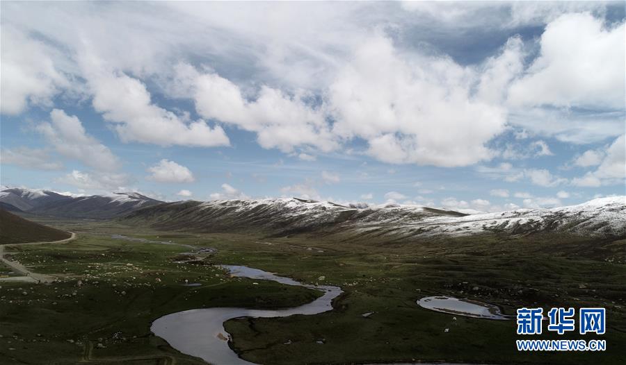 在年保玉則,雪山與湖泊相映成畫(5月21日無人機拍攝)。 年保玉則位于青海省果洛藏族自治州久治縣境內(nèi),地處三江源國家公園核心區(qū),主峰海拔5369米。年保玉則周圍森林茂密,湖泊星羅棋布,棲息著裸鯉、巖羊、白唇鹿、棕熊等珍稀動物。 新華社記者 張宏祥 攝
