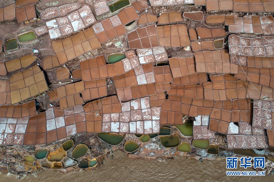 這是西藏芒康縣納西民族鄉(xiāng)的古鹽田景觀(5月22日無(wú)人機(jī)拍攝)。位于西藏昌都芒康縣瀾滄江畔的古鹽田,至今仍保持最原始的手工曬鹽方式。據(jù)史料記載,唐朝時(shí)期當(dāng)?shù)鼐烷_(kāi)始曬鹽。鹽田在瀾滄江兩岸依山而建,由多根木柱搭架,架上用透水性強(qiáng)的泥土鋪成平面夯實(shí),當(dāng)?shù)鼐用駨臑憸娼系柠}井、鹽池中取出鹵水倒入鹽田,經(jīng)陽(yáng)光蒸曬、風(fēng)干,結(jié)晶成鹽。遠(yuǎn)遠(yuǎn)望去,鹽田錯(cuò)落有致,田中鹵水宛若鏡面,形成壯麗奇觀。新華社記者李鑫 攝