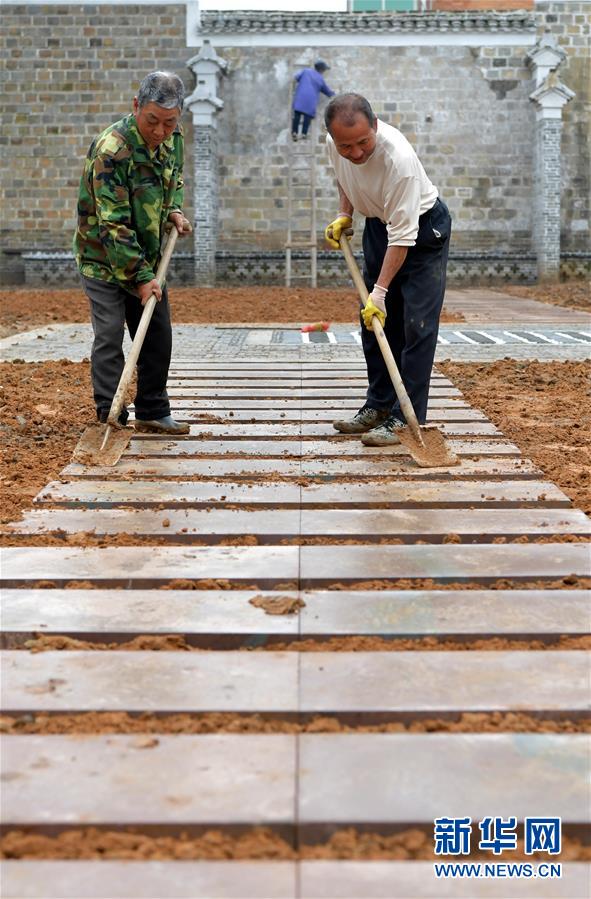 4月28日,在江西省南昌市南昌縣岡上鎮(zhèn)省級文物保護(hù)單位“吳氏家廟”內(nèi),搶修工程隊(duì)的工人在鋪磚。近年來,江西省南昌市南昌縣推動古村落保護(hù)工作。2019年,首批搶修工程隊(duì)進(jìn)駐南昌縣岡上鎮(zhèn),對當(dāng)?shù)刂氖〖壩奈锉Wo(hù)單位“吳氏家廟”及縣級文物保護(hù)單位“吳培荊堂古建筑群”進(jìn)行搶救性維修。同時(shí)當(dāng)?shù)卣€制定文旅規(guī)劃,讓文物保護(hù)與觀光旅游相結(jié)合,推動鄉(xiāng)村振興。 新華社記者 彭昭之 攝