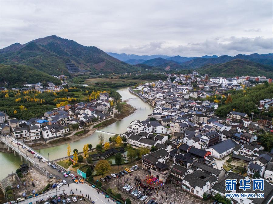 11月19日無(wú)人機(jī)航拍的河橋古鎮(zhèn)。 新華社記者 徐昱 攝