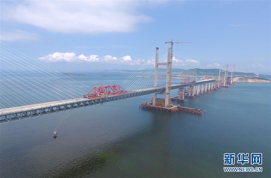 福平鐵路平潭海峽公鐵兩用大橋元洪航道橋主橋正在合龍(6月5日攝)。 新華社記者 林善傳 攝