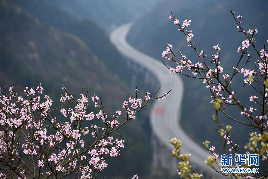 貴州思劍高速公路劍河縣岑松鎮(zhèn)段的春季景觀(3月23日攝)。陽春時(shí)節(jié),貴州思(南)劍(河)高速公路劍河縣岑松鎮(zhèn)附近的桃花和梨花陸續(xù)開放。 新華社記者楊文斌攝