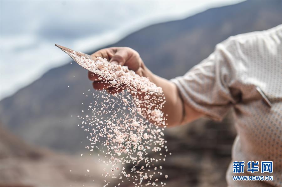 一年中,除了盛夏雨季的兩三個(gè)月以外,其余時(shí)間都可制鹽采鹽?!拔覀冞@里的鹽,也被稱為‘桃花鹽’,是因?yàn)樘一ㄊ㈤_的時(shí)候采制的鹽品質(zhì)好,產(chǎn)量高?!备袼深D登說,還有人說因?yàn)榧t鹽色如桃花,被稱為桃花鹽。