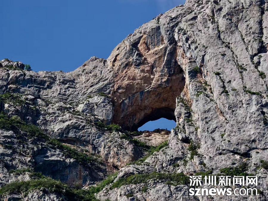 而在石城正南方,有一道石山對峙而成的“正門”,門外是一條南北走向的十里峽谷,恰似城外長廊,南端矗立兩遭數百來高的對稱巖壁,猶如兩堵巨型門墩組成宏偉的前門,是俗稱“鬼門關”的納加石門。李仁奇攝