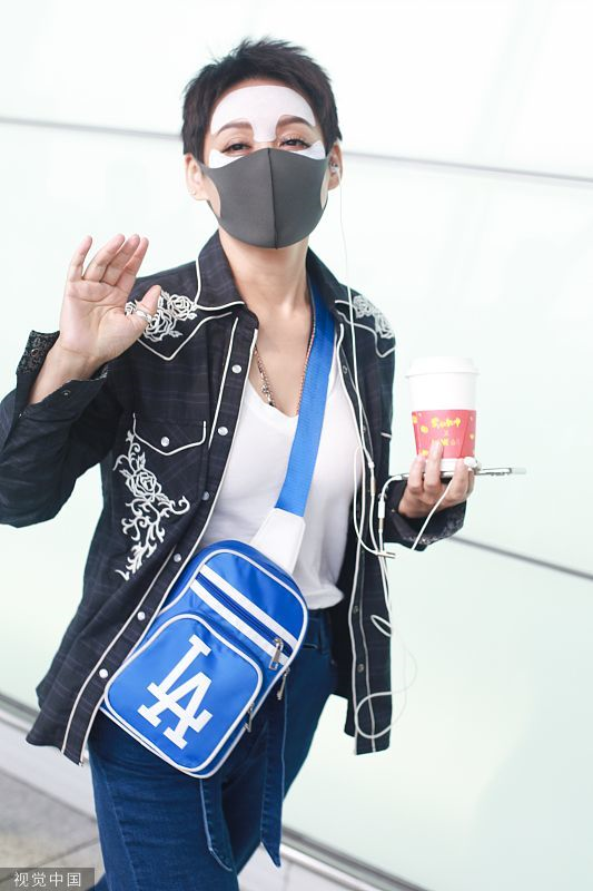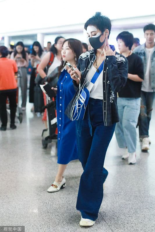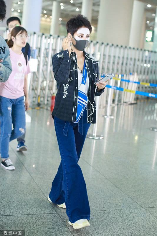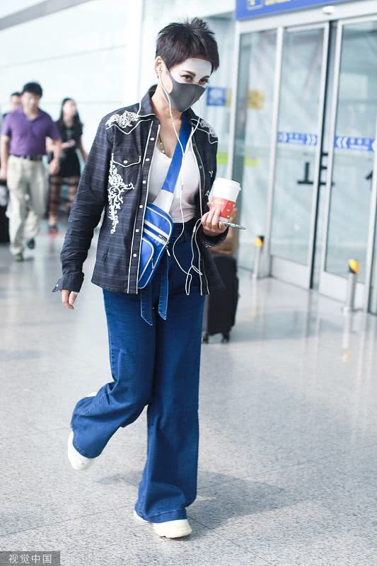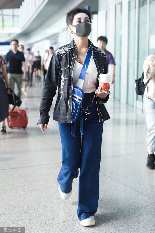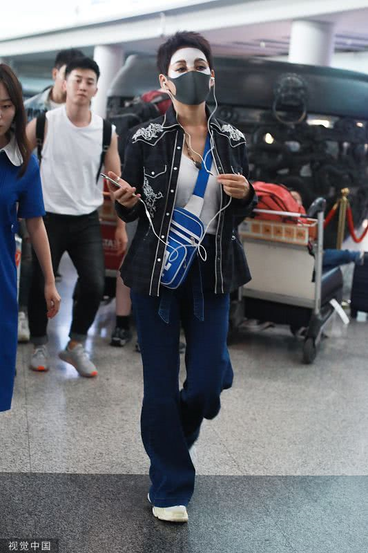2019年6月19日,北京,寧靜現(xiàn)身機(jī)場。她穿敷面膜亮相短發(fā)干練個(gè)性灑脫,戴口罩對(duì)鏡揮手大方任拍。