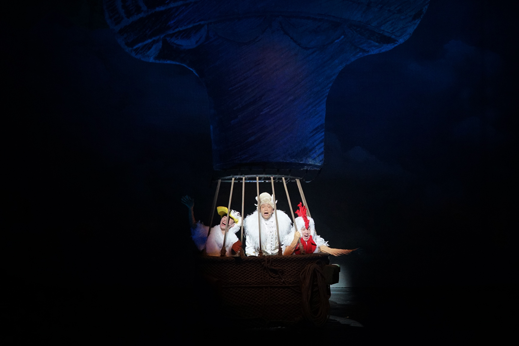 另一方面,《毛毛帶你飛》的音樂也并不低齡化,小朋友對旋律更感興趣,而成人則能收獲欣賞音樂劇的快樂。詞曲的創(chuàng)作者李猛認(rèn)為這部音樂劇最大的特色在于平衡:“小朋友和成年人都可以欣賞,這是第一層平衡。其次,這部音樂劇里的所有故事都是圍繞飛行展開的。不同時(shí)代與地域的人對于飛行有著截然不同的理解,如何用音樂展示這種差異性的同時(shí)保持母題的統(tǒng)一,這是第二層平衡。最后,故事的敘述與音樂表達(dá)相輔相成,這是第三層平衡。這三種平衡彼此依托,塑造出合家歡原創(chuàng)音樂劇的獨(dú)特魅力。”