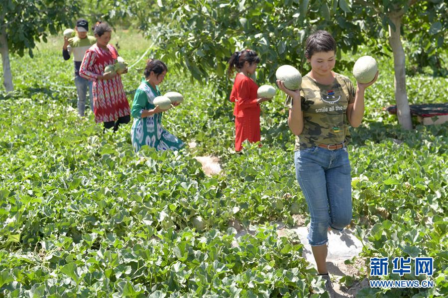 6月23日,新疆喀什地區(qū)巴楚縣的瓜農(nóng)搬運(yùn)剛采摘的留香瓜。新華社記者 丁磊 攝